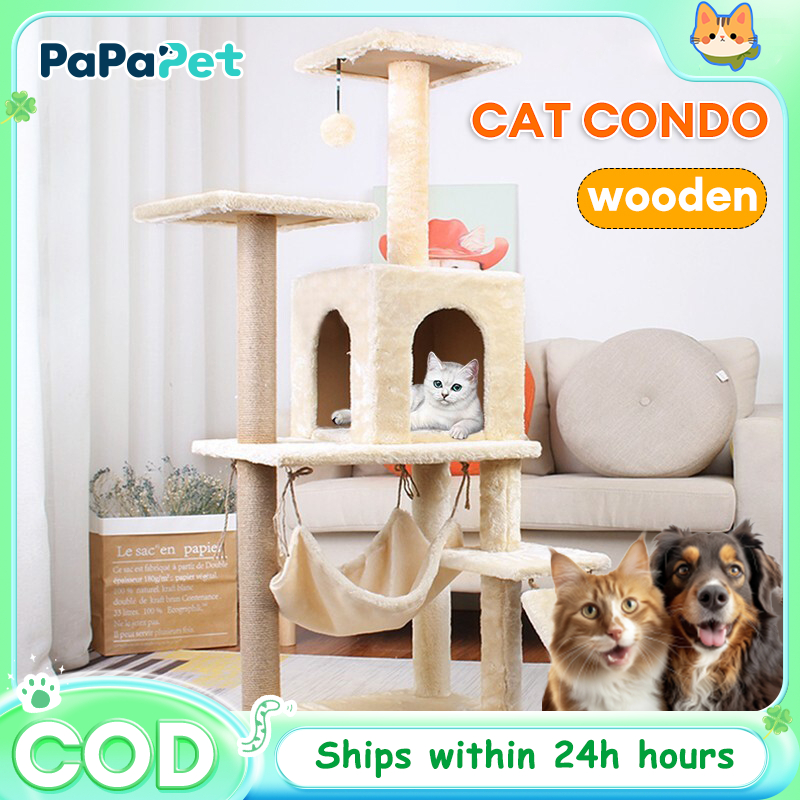 Cat Condo Cat Tower Plush Cat House Game Tower Cat Climbing Abrasion Resistant Solid Cat Condo