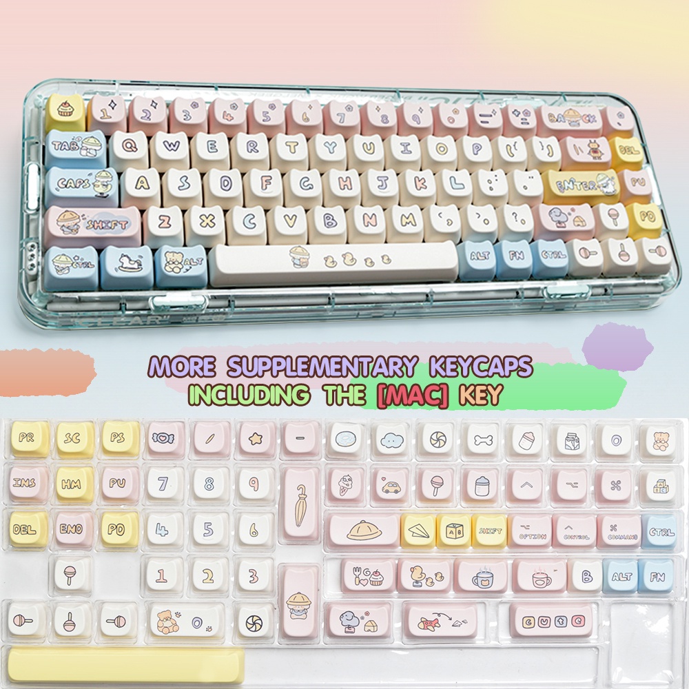 Cat Ear Shape Kindergarten Keycaps 138Keys/Set MAO Profile PBT Compatible Gateron Cherry MX Switches 60~108Key Mechanical Gaming Keyboard Keycap