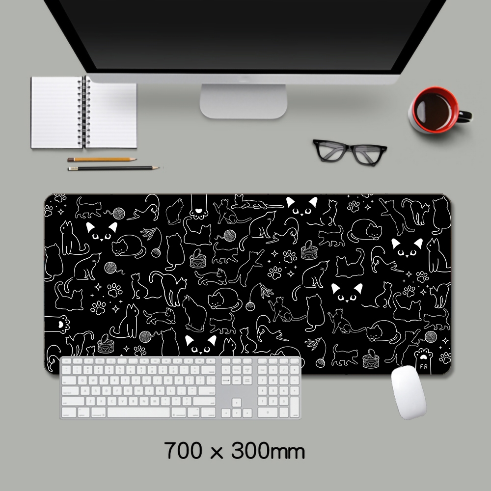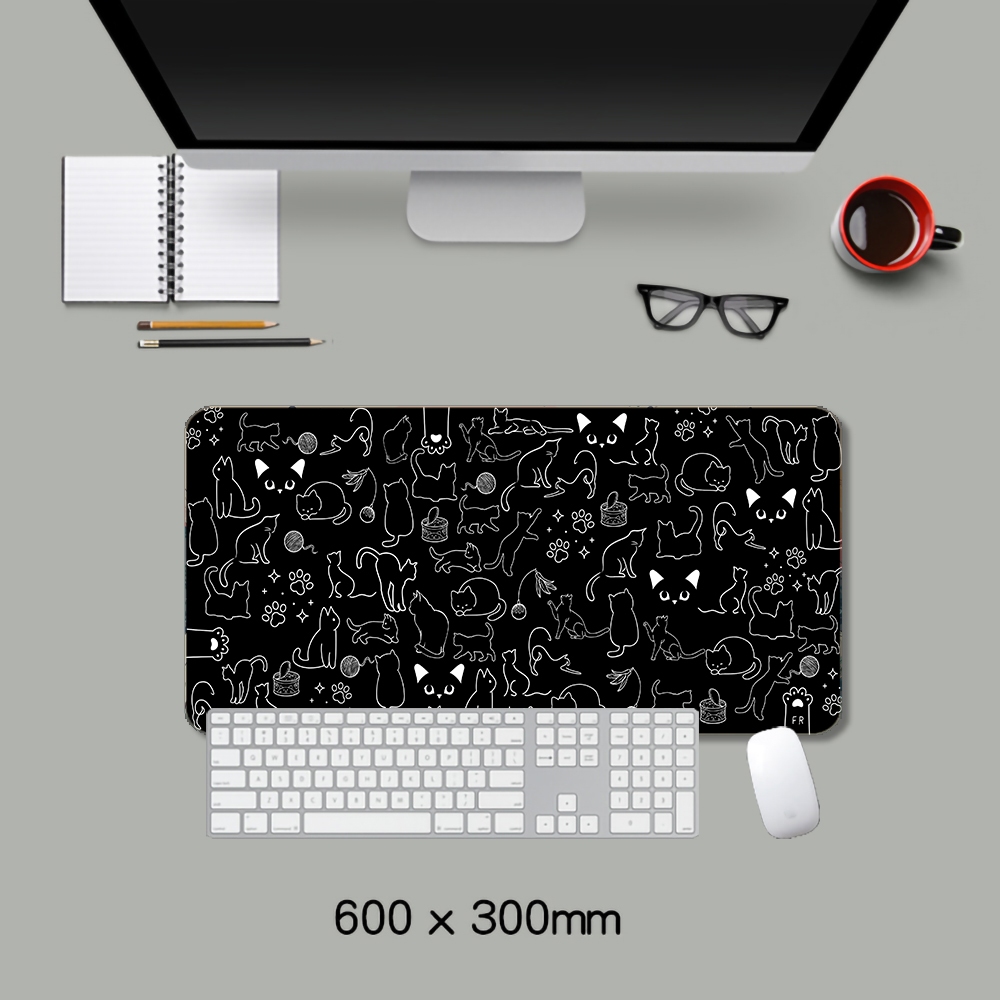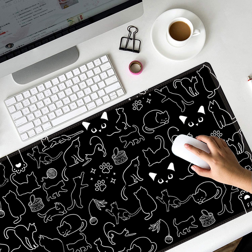 Cat Mousepad Black Art Extended Mousepad Large Gaming Mousepad Stitched Edge Deskpad