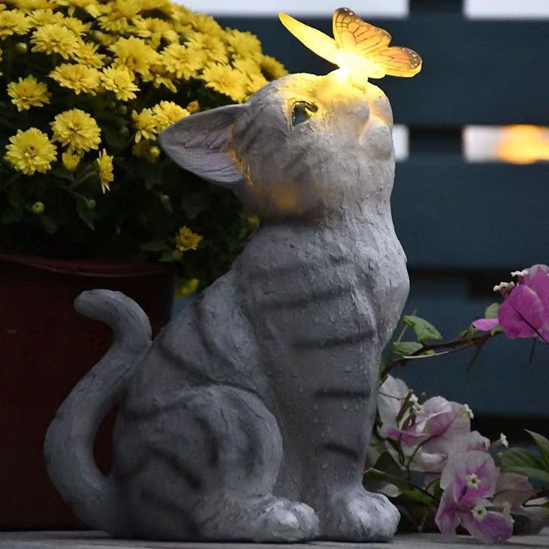 Cat Sculpture With Solar Light Garden Decoration Waterproof Resin Figurine Ornaments Solar Powered