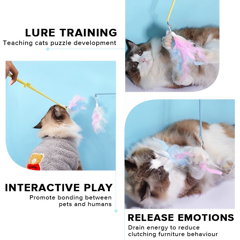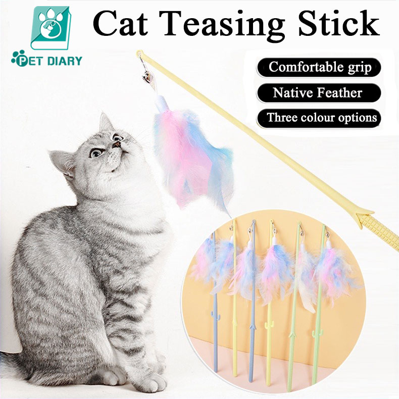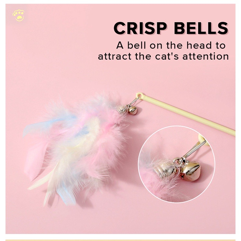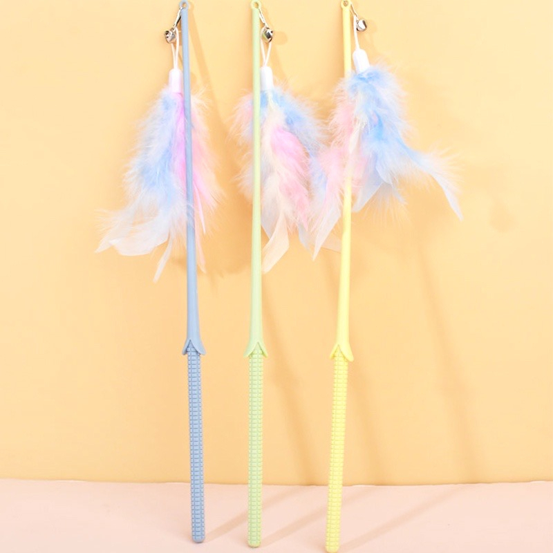 Cat Teaser Toy Pet Cat Puppy Teaser Bell Feather Stick Rod Funny Interactive Toy