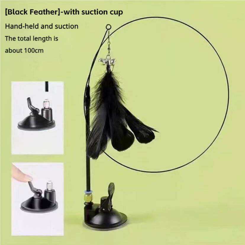 Cat Teaser Wand Toy with Suction Cup Feather Bell Interactive Portable Cute Kitten Toys