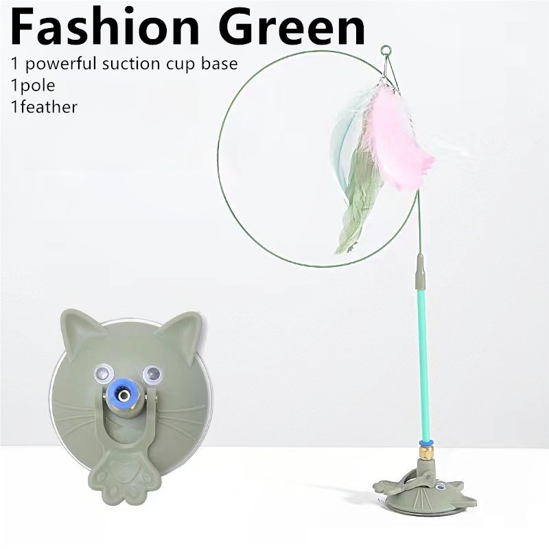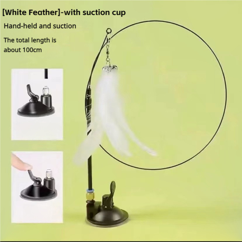 Cat Teaser Wand with Suction Cup Funny Interactive Cat Feather Toy Indoor Cute