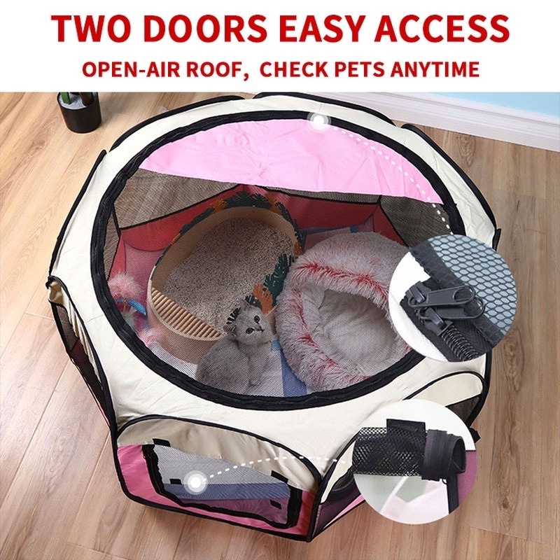 Cat Tent Cat House Portable Folding Outdoor Travel Pet Tent Washable Octagonal Dog Cage Pet Fence