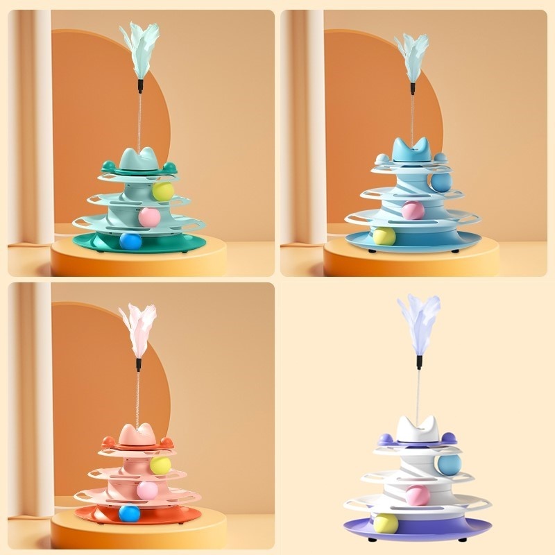 Cat Toys Corrugated Scratching Cardboard Toy Turntable Tower Cat Four-layer Turntable InteractiveToy