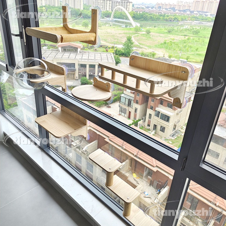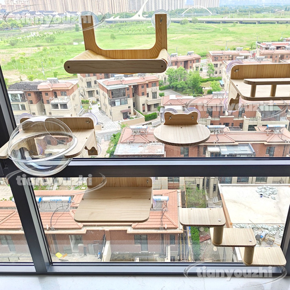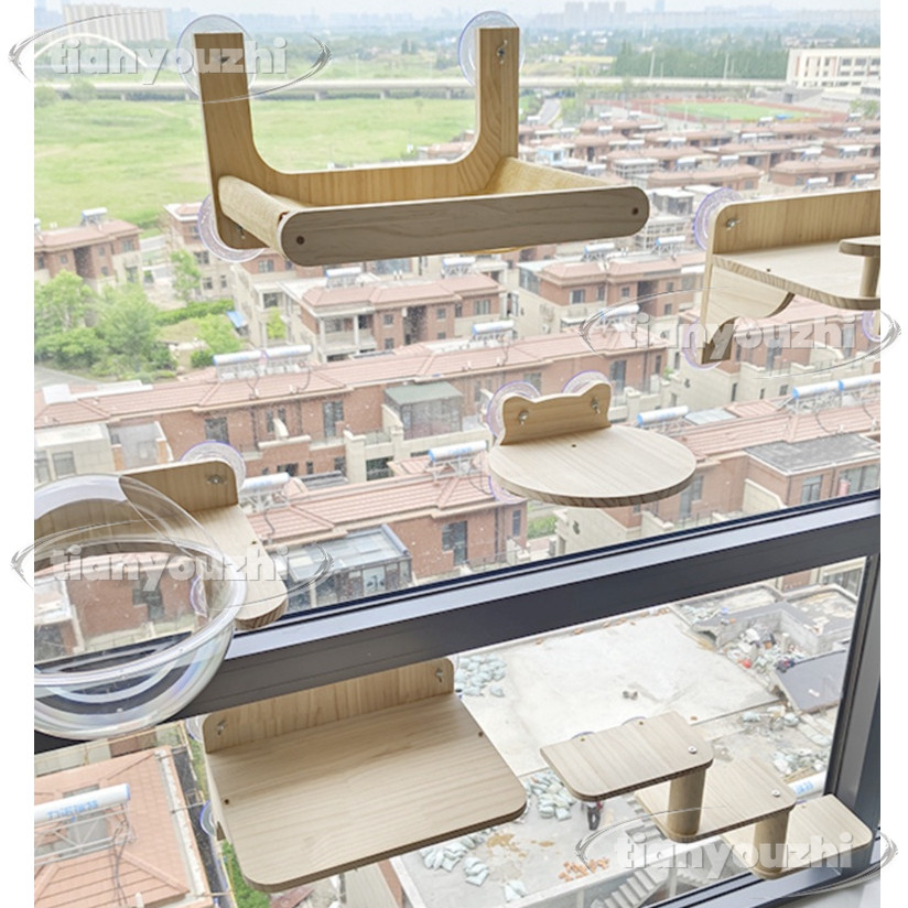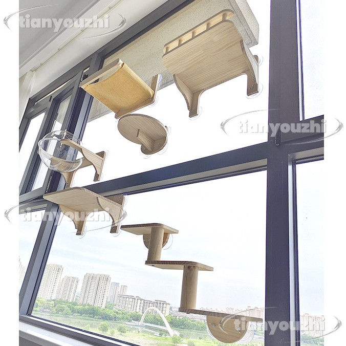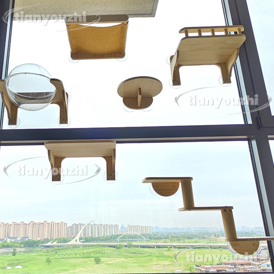 Cat Window Hammock With Heavy Duty Suction Cups Punch Free Cat Wall Shelf/ Cat Bed /Solid Wood House Pet House Cat Box Cat Cage cat wall furniture Wall-mounted Cat Climbing Rack