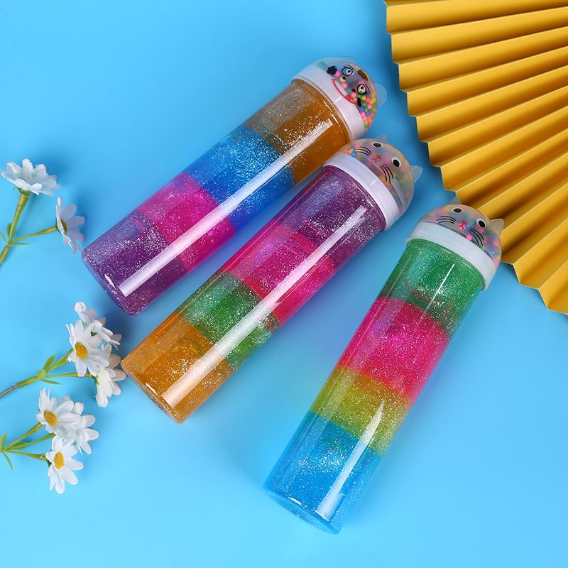 Cat rainbow Glitter tube Slime with ball foam big (1pc/qty)