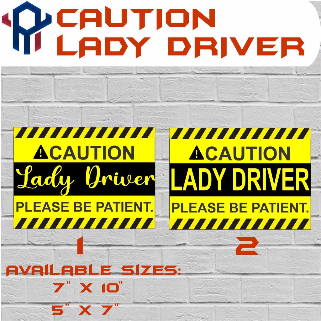 Caution! Lady Driver student driver new driver please be patient printed laminated vinyl sticker