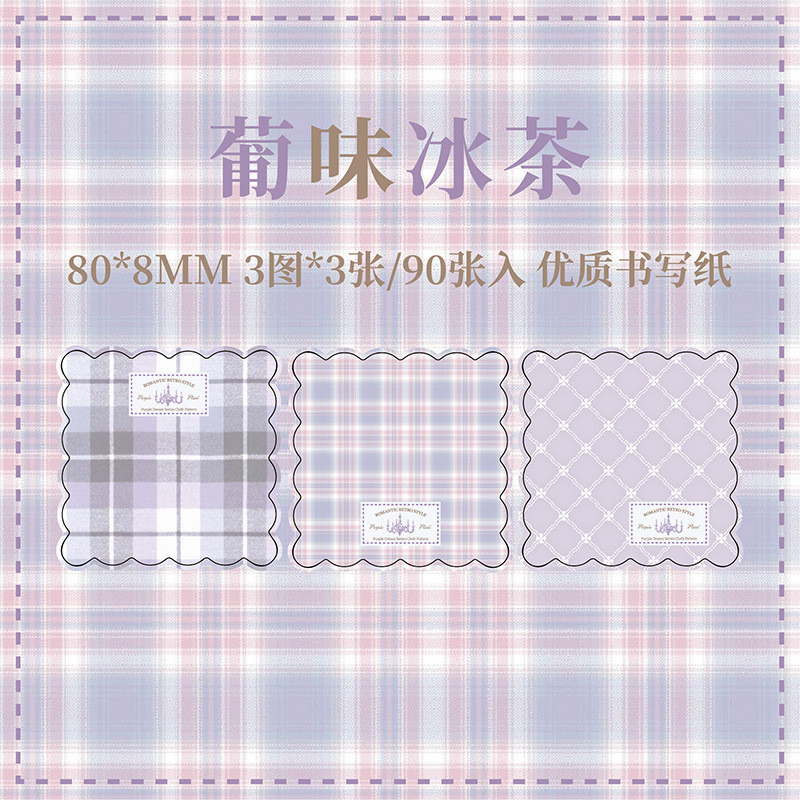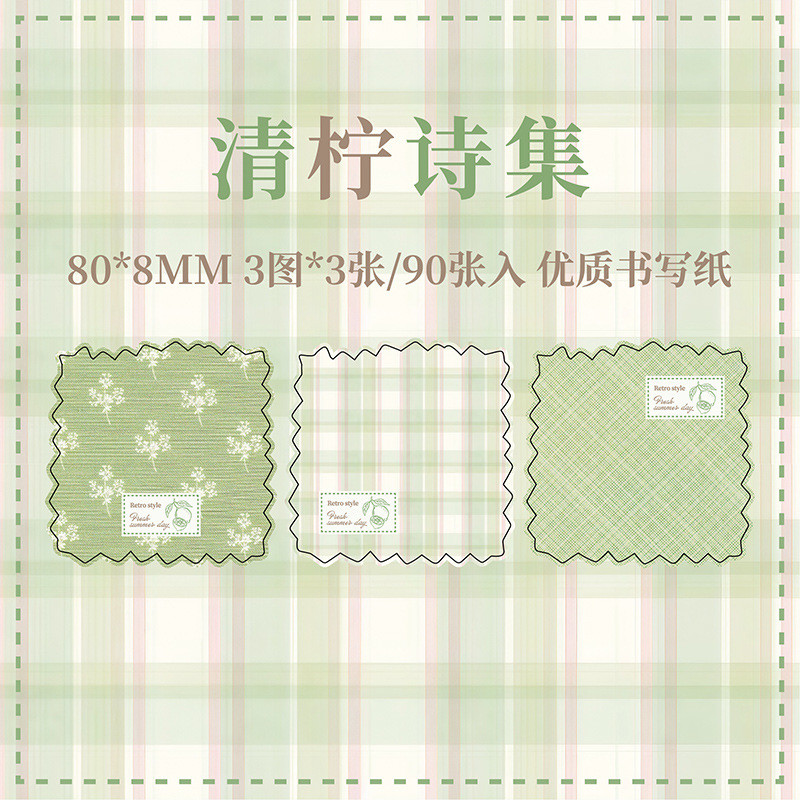 Cdaily|90 Sheets Small Fresh Plaid Three Enjoy Package Special-Shaped N Times Stickers Plaid Collection Book Note Student Memo Message Sticky Notes Handbook Landscaping DIY Base Decoration Collage Handbook Stickers Sticky Notes