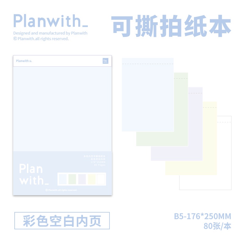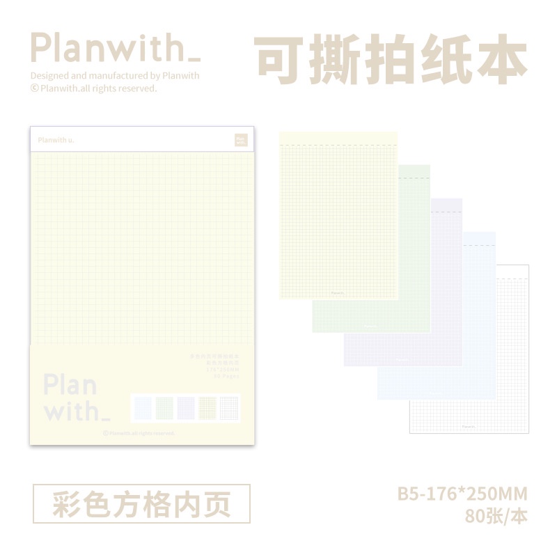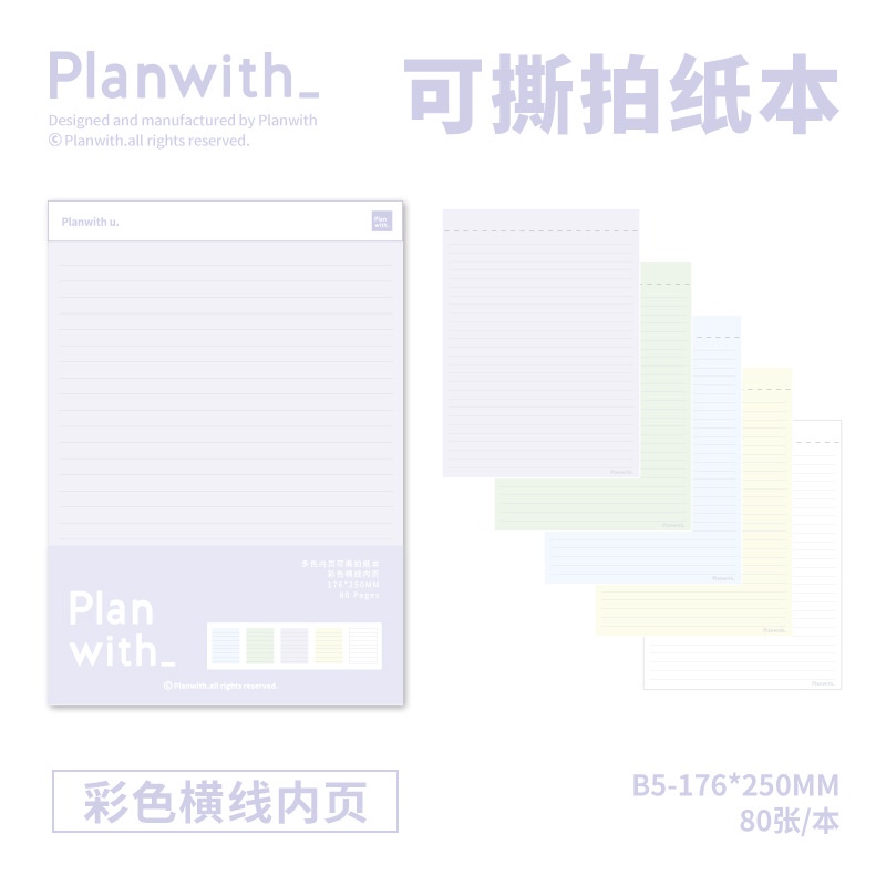 Cdaily|Tearable Paper Notebook A5B5 Photo Handheld Writing Hard Bottom Board Draft Study Learning Plan Book Horizontal Line Square