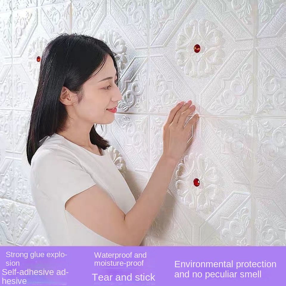 Ceiling Wall Paper Dinding Foam 3D Wall Paper Dinding Adhesive Wall Stickers PE Waterproof Panner Wallpaper Rood Ceiling Room Decor Pelekat Dinding Batu Bata