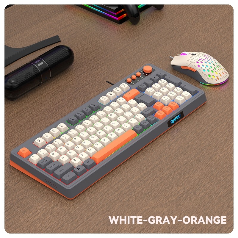 Cen x Raiku Wired Rainbow LED Gaming Keyboard Bundle And Mouse Set 98 Silent Media Keys Volume Knob