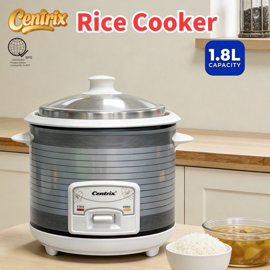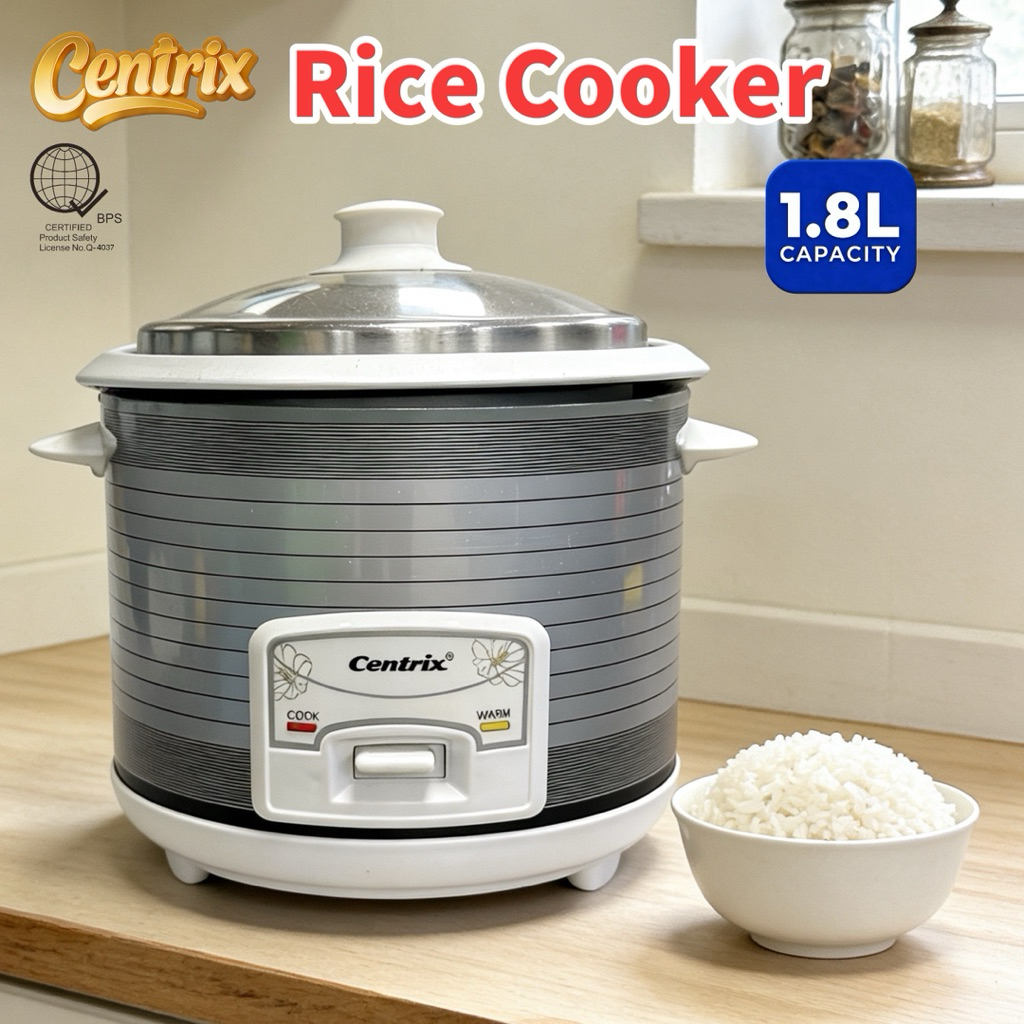 Centrix 1.8L Rice Cooker 10-Cups Stainless Steel Lid Aluminum liner Non-Stick Design Pressure Cooker