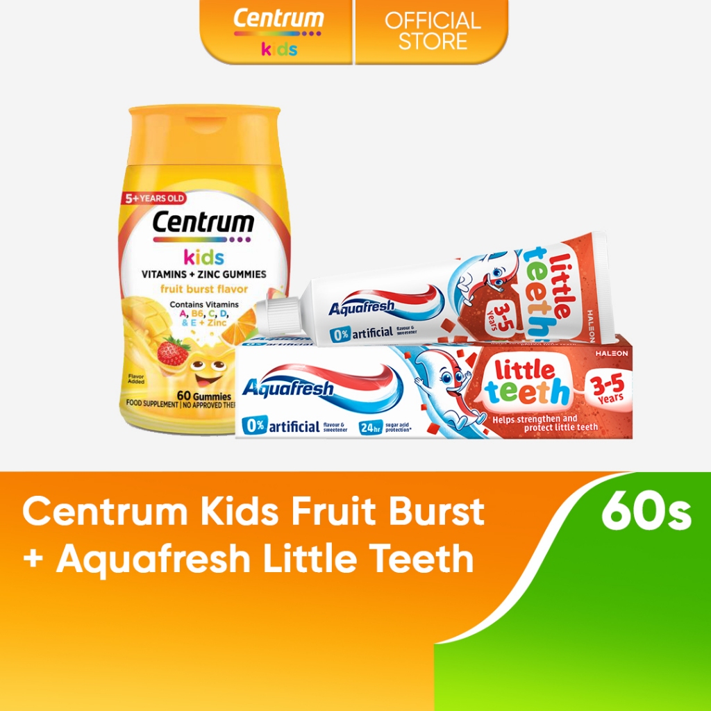 Centrum Kids 60s Fruit Burst + Aquafresh Little Teeth Kids' Toothpaste 50ml (3-5 Years Old)