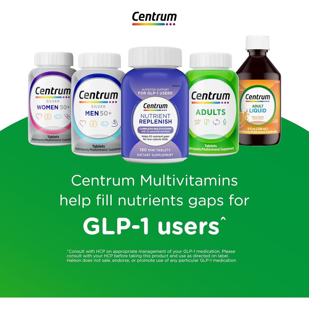 Centrum Silver Multivitamin for Adults 50 Plus, Multivitamin/Multimineral Supplement, Vitamin D3, B Vitamins, Gluten Free, Non-GMO Ingredients, Supports Memory and Cognition in Old