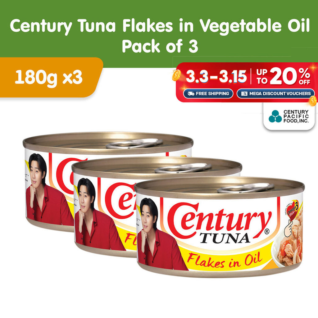 Century Tuna Flakes in Vegetable Oil 180g (Pack of 3) - Protein, Omega 3 DHA, No Preservatives
