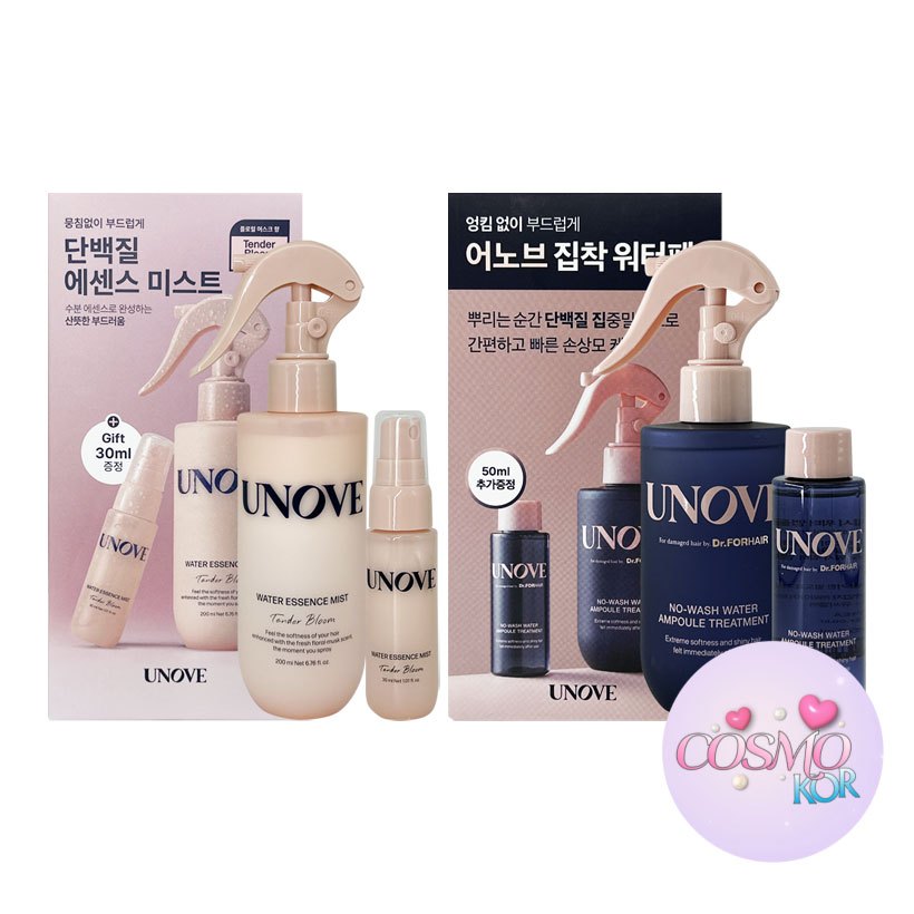 UNOVE Water Essence Mist 200ml + 30ml / No-Wash Water Ampoule Treatment 200ml + 50ml / hair mist