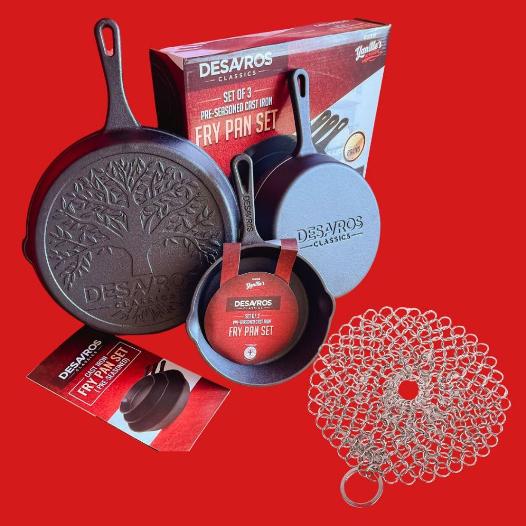 Desavros Cast Iron Pan Set of 3 Pan Limited Edition + Stainless Chain Scrubber
