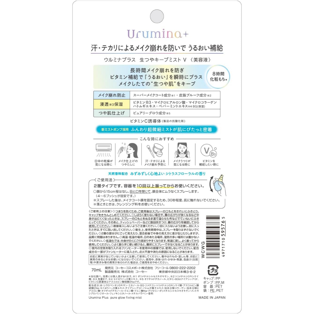 KOSE Urumina Plus Pure Glow Fixing Makeup-preventing mist that prevents makeup from crumbling and sebum from crumbling and shininess