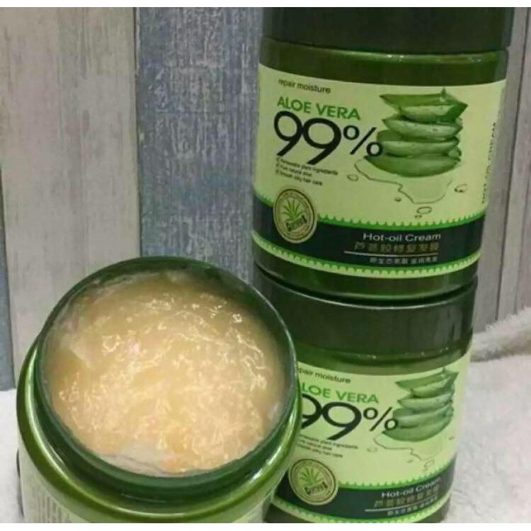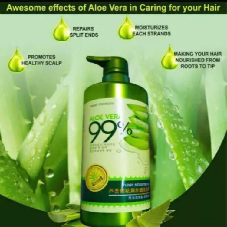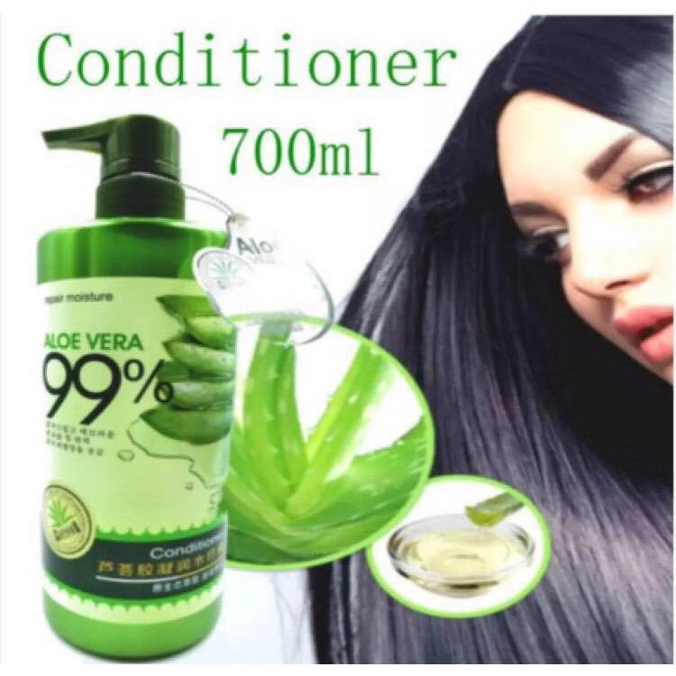 (3in1) Original 99% Aloe Vera Hair Shampoo 800ml + Conditioner 700ml Repair Moisture + Hot Oil Cream