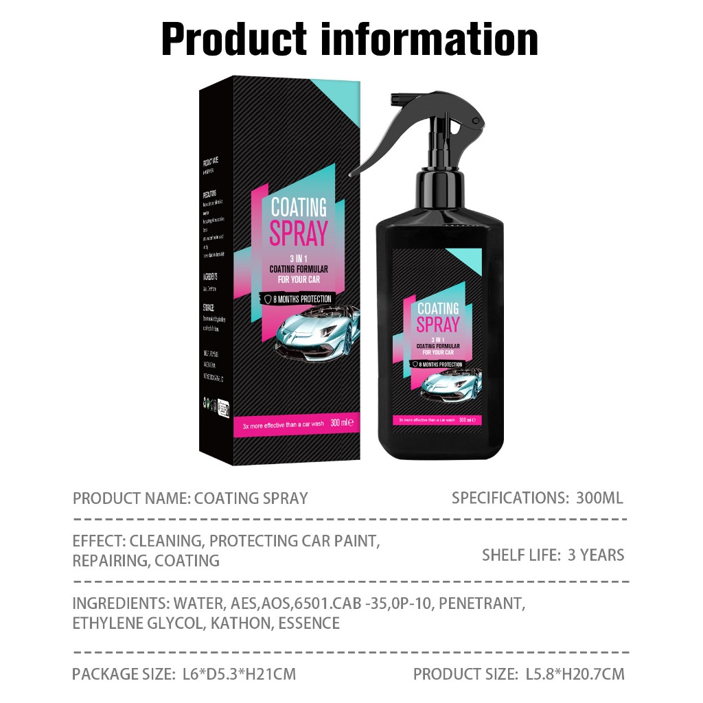 Ceramic Detail Spray Coating for Cars Tire Shine Hydrophobic Coating Cleaning Tool for Windows Windshields Mirrors