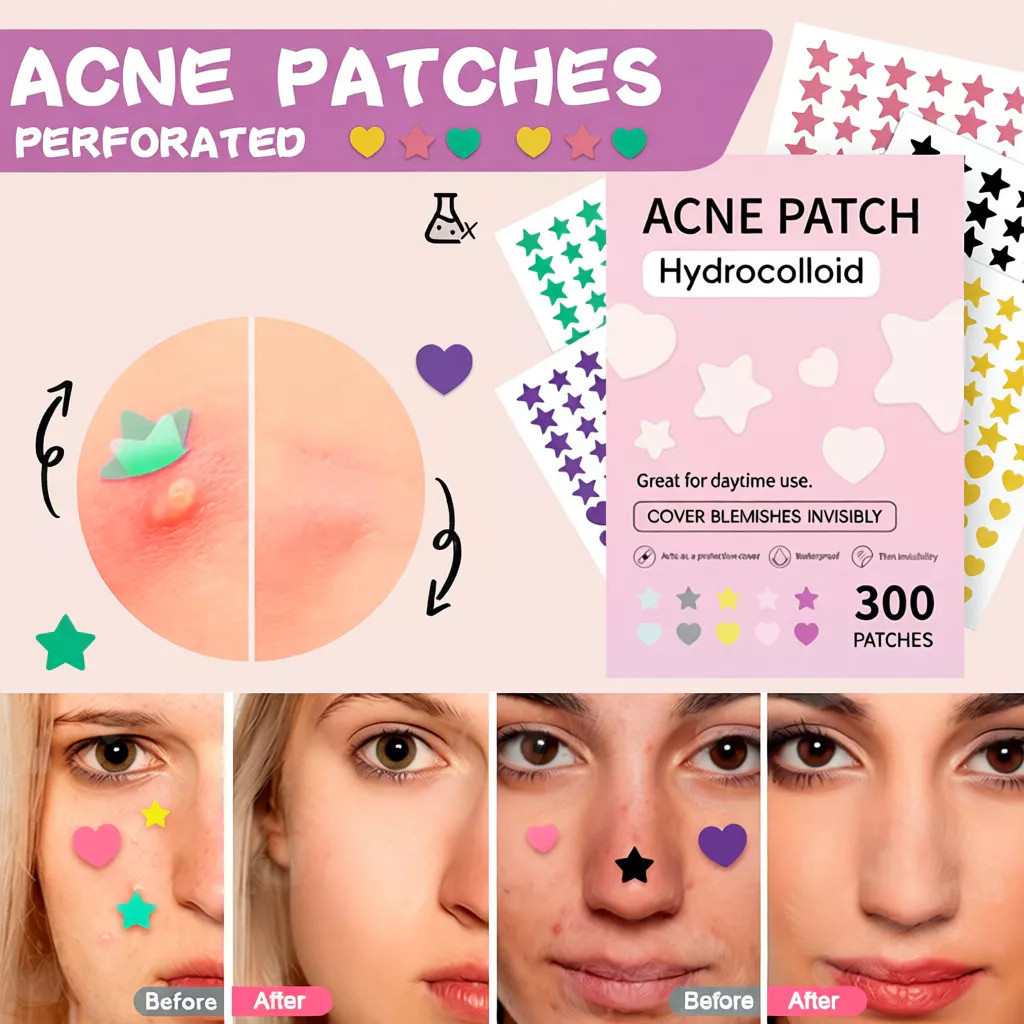 300Pcs Colorful Heart Star Shaped Acne Patch Breathable Acne Pimple Patch