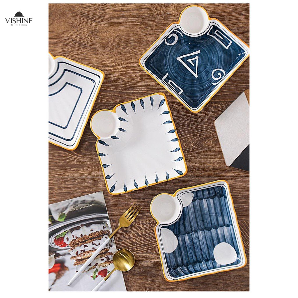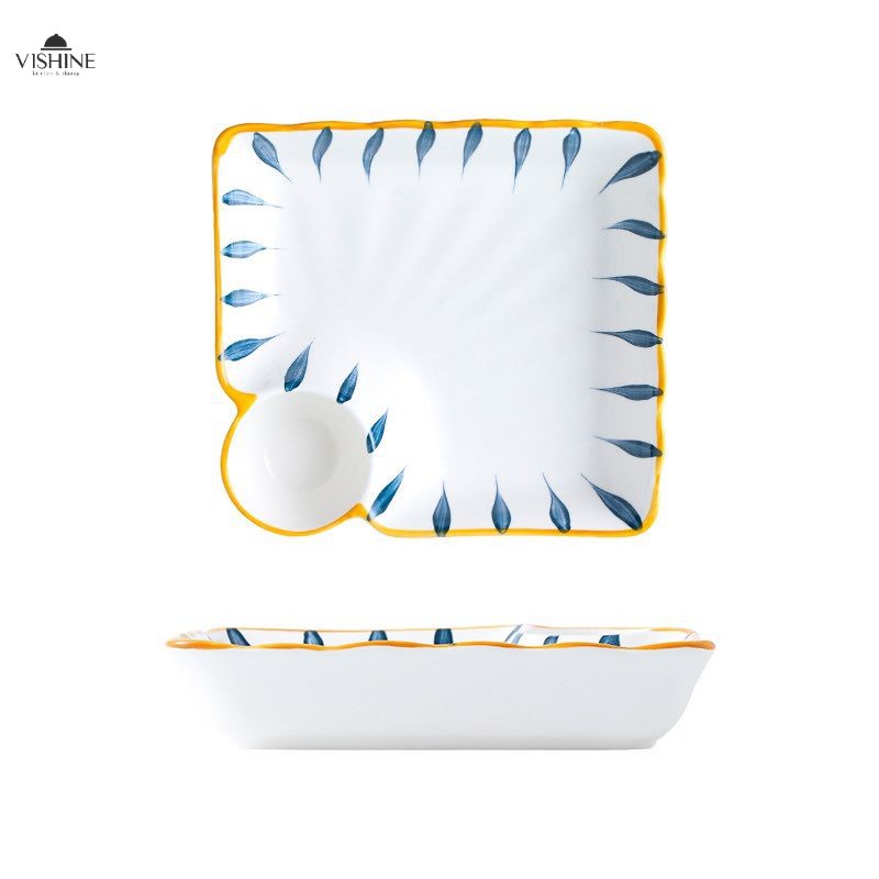 Ceramic Square Shape Japanese Sushi Plate Dessert Salad Serving Tray Fruits Snacks Tray Plate 7.5"