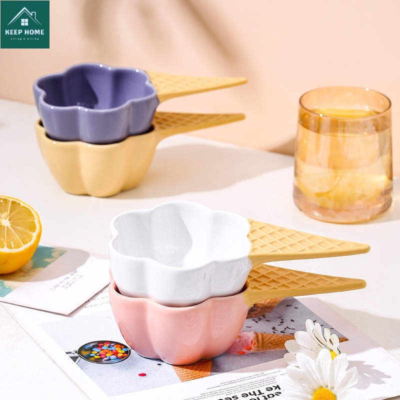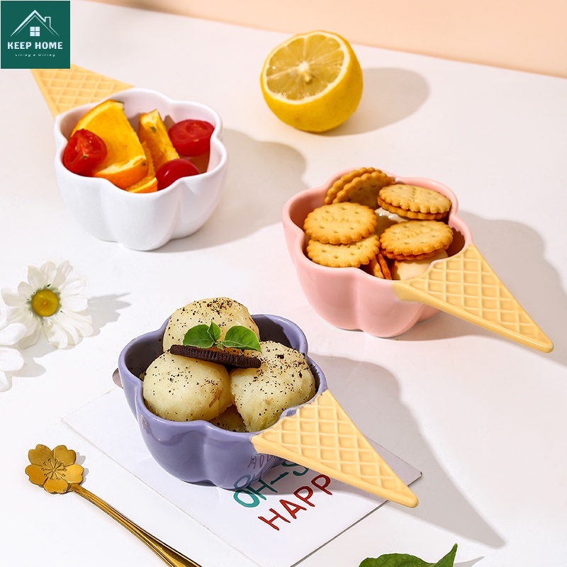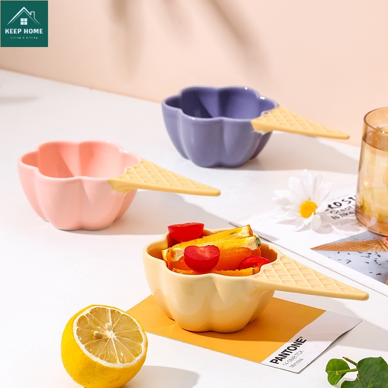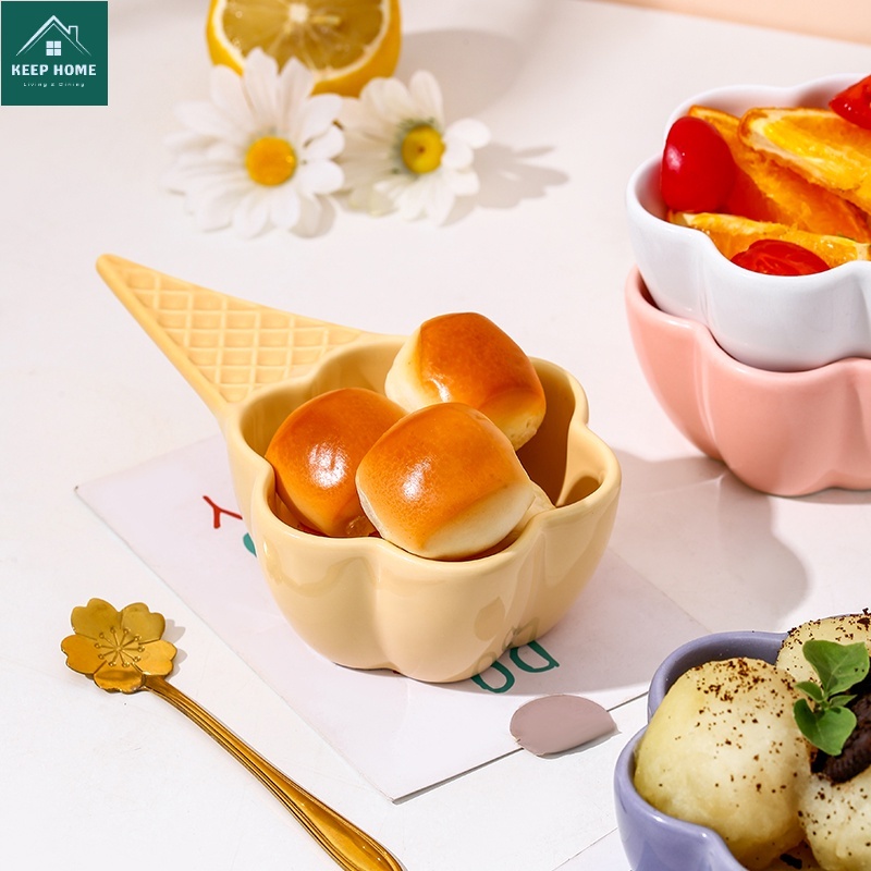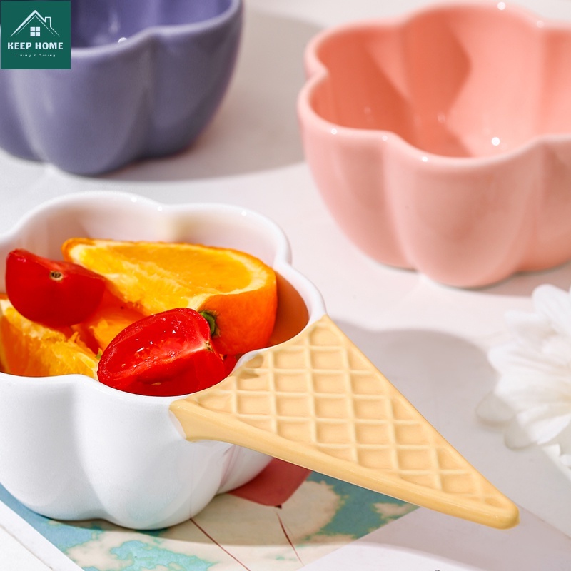 Ceramic Tableware Korean Creative Dessert Bowl Ice Cream Cone Shape Ice Cream Cup Handle Fruit Bowl