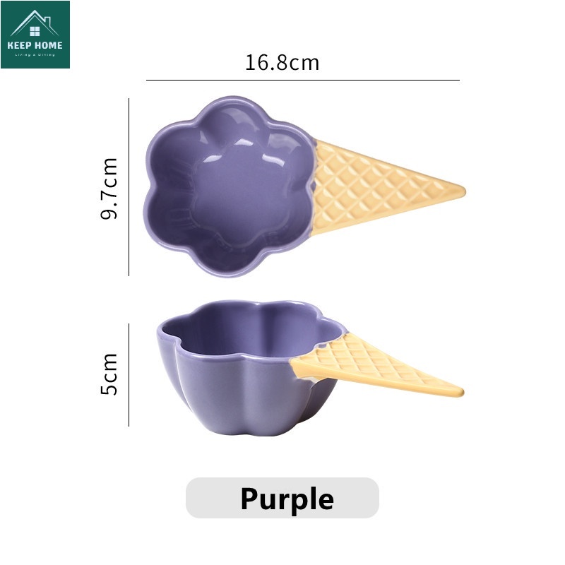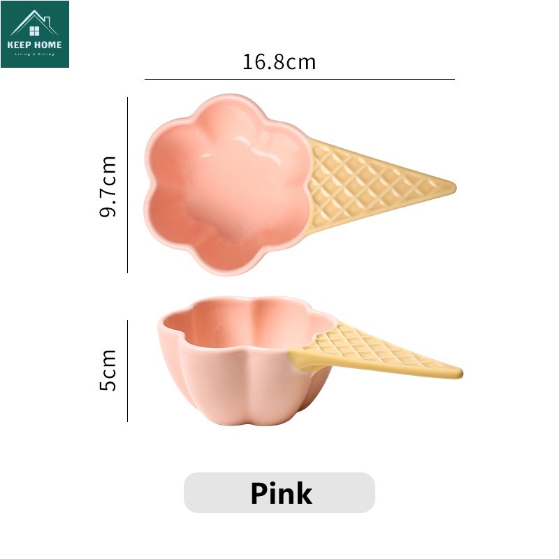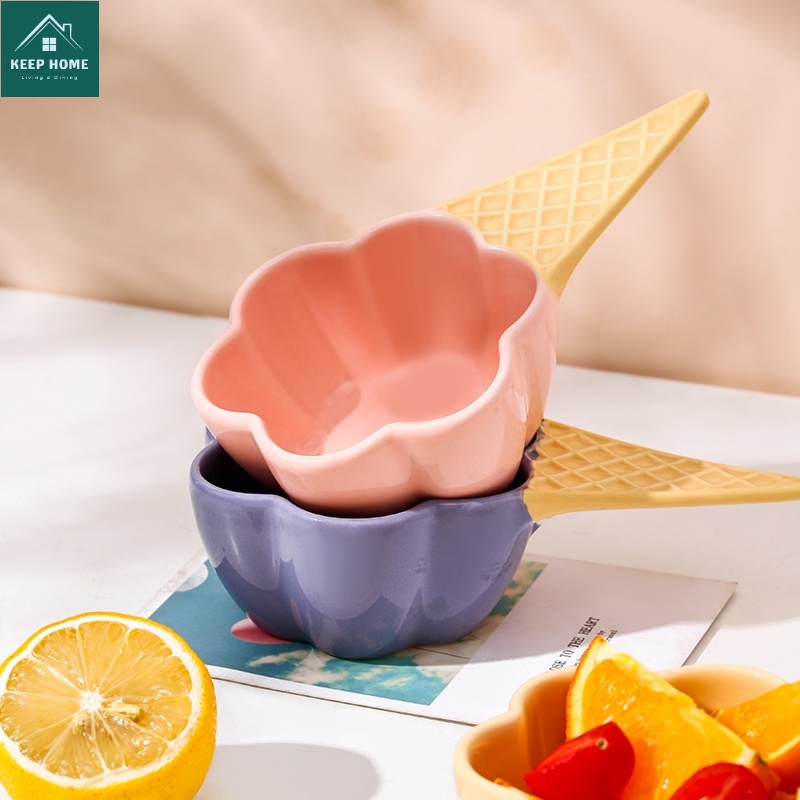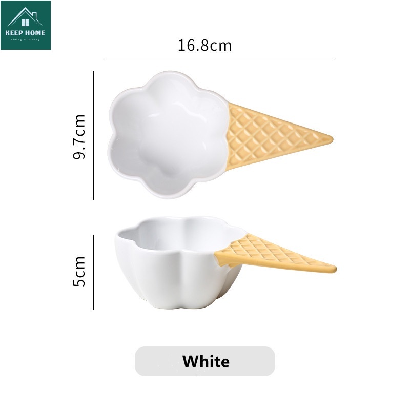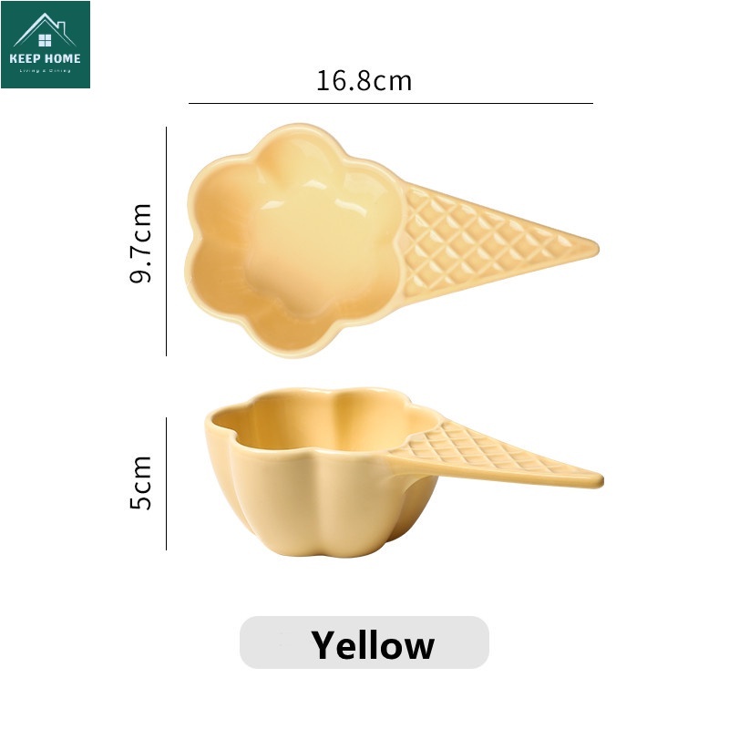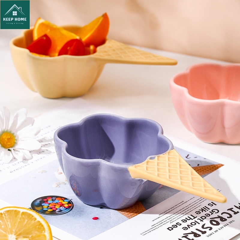 Ceramic Tableware Korean Creative Dessert Bowl Ice Cream Cone Shape Ice Cream Cup Handle Fruit Bowl