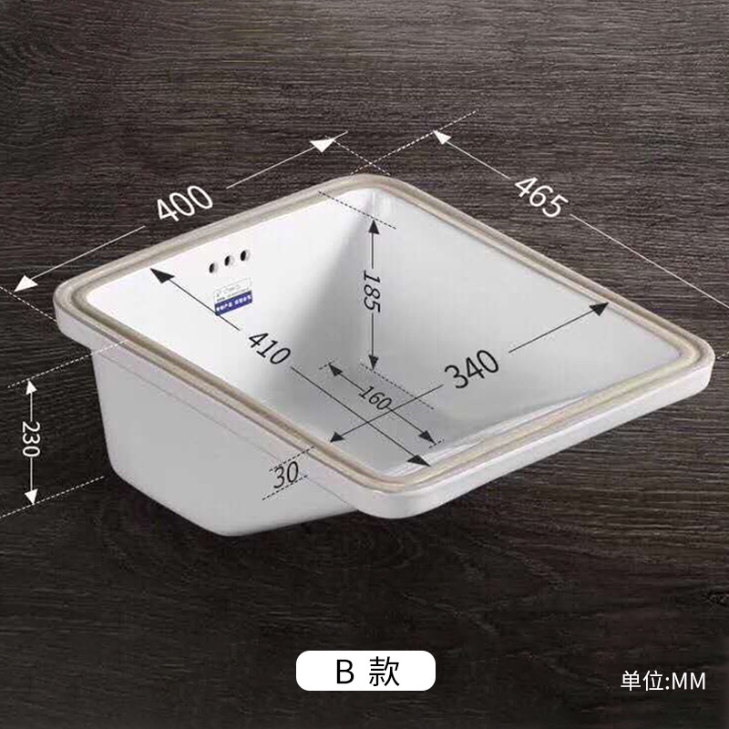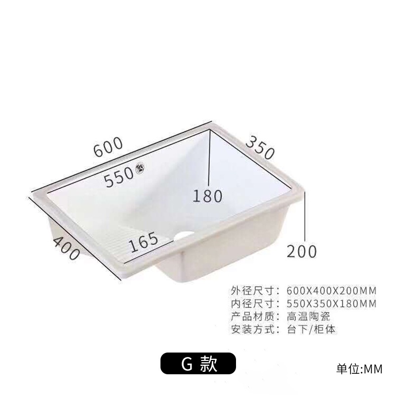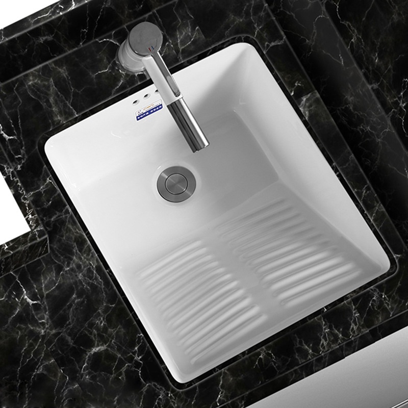 Ceramic Undercounter Wash Basin Laundry Basin with Washboard Washbasin Balcony Embedded Square Drop-