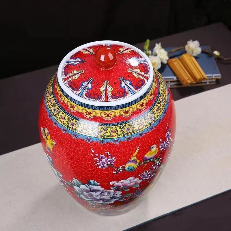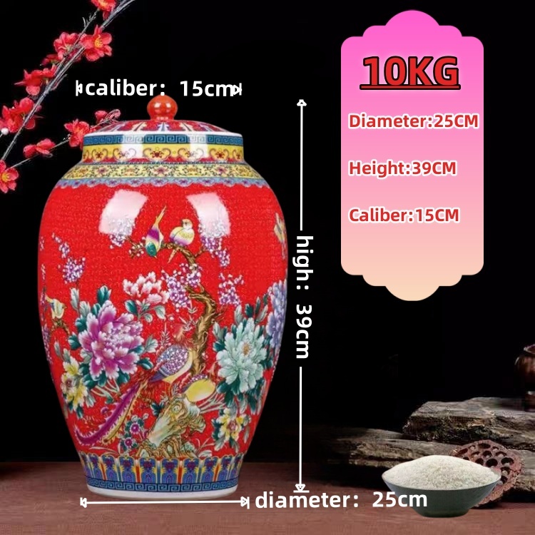 Ceramic rice storage container porcelain jar with lid rice dispenser 10/15/25kg clay jar rice box