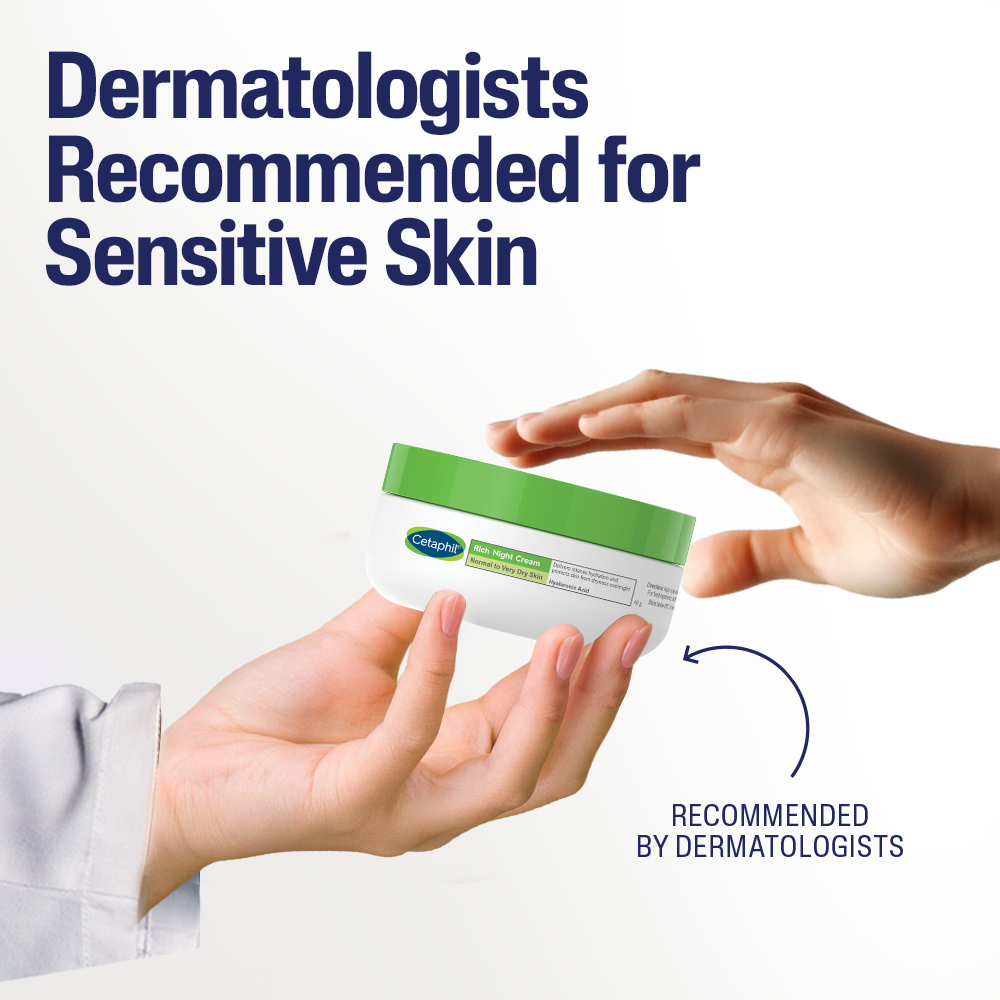Cetaphil Rich Night Cream 48g [For Sensitive Skin / Moisturizing Face Cream with Hyaluronic Acid]