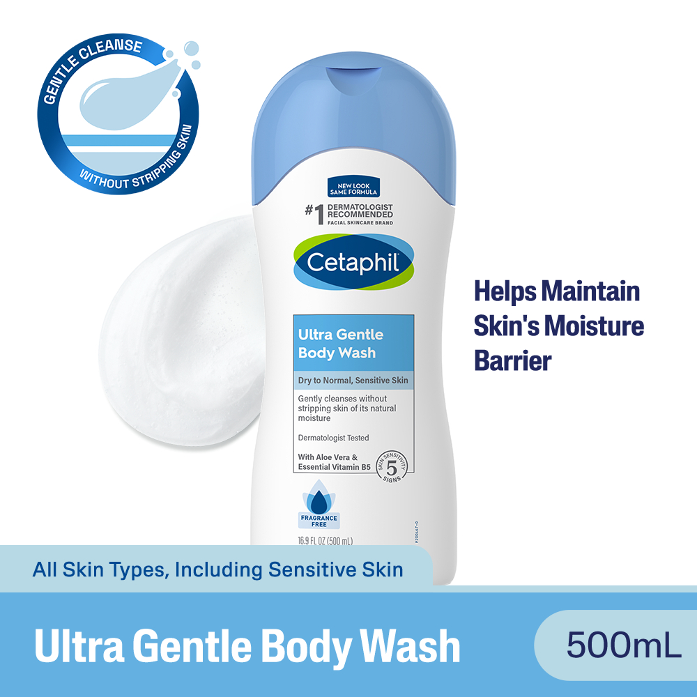 Cetaphil Ultra Gentle Body Wash 500ml [For Dry Sensitive Skin / Cleansing Moisturizing Body Soap]