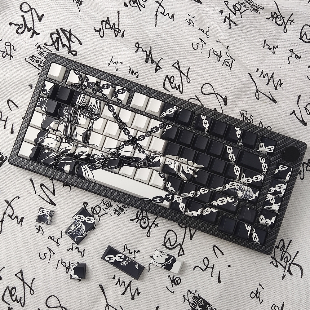 Chainsaw Man Makima Keycap Cherry Profile 130 Keys PBT Five-sided Dye Sublimation Letter Side Print Light Transmission Mechanical Keyboard Anime Keycaps Creative Cool Keycap