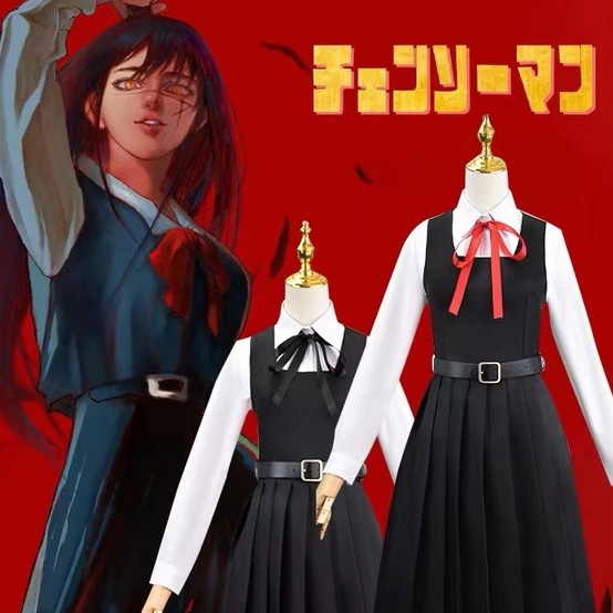 Chainsaw Man - Mitaka Asa Cosplay Costume Uniform Dress Halloween Carnival Suit and Wig