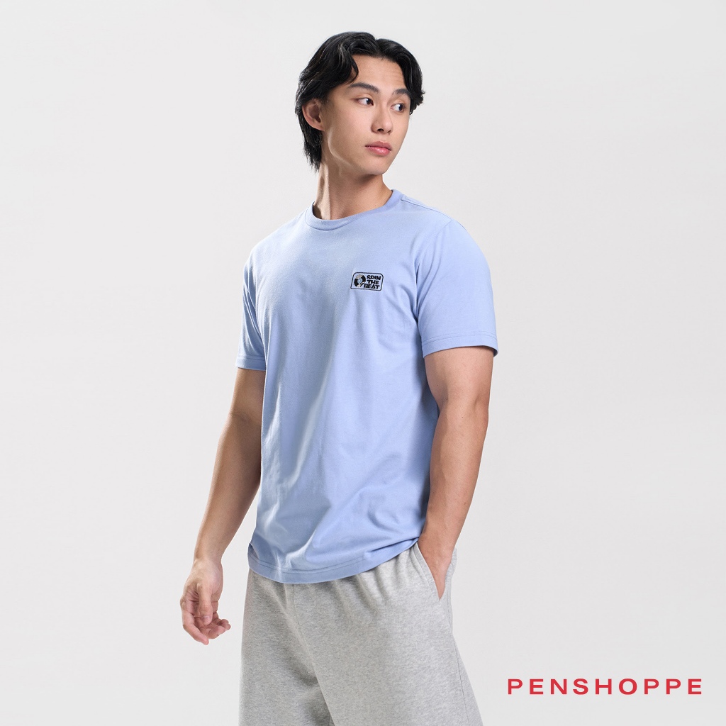 Penshoppe Spin The Beat Regular Fit T-Shirt with Embroidery For Men (Light Blue) [Tshirt, T shirt]