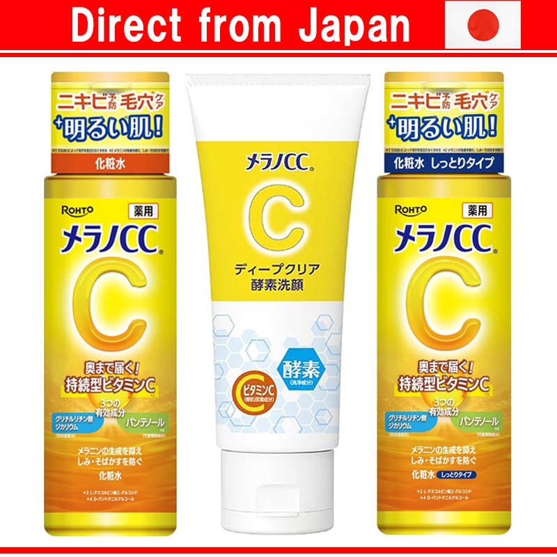 Melano CC Medicated Acne Care Whitening Lotion 170ml, Melano CC Medicated Spot Treatment Whitening Lotion Moisturizing 170ml (W Vitamin Charge Panthenol Blend) Melano CC Deep Clear Enzyme Face Wash 130g (Enzyme Vitamin C Blend)【Direct from Japan】
