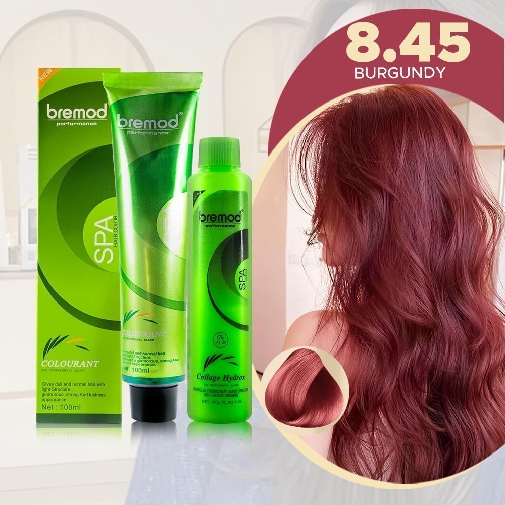 Bremod Hair Color 8.45 Burgundy 100mL with Bremod Oxiding 100g Hair Dye Hair Care