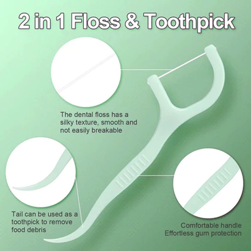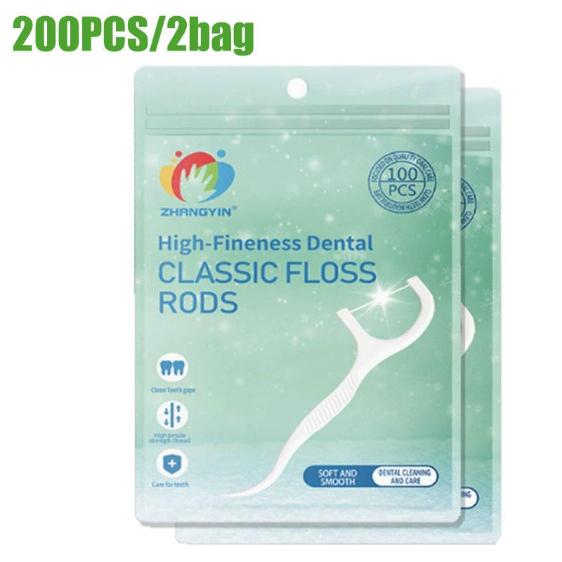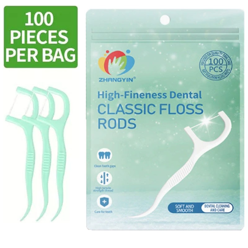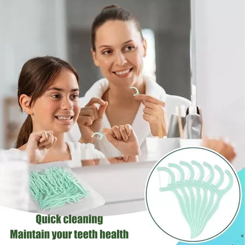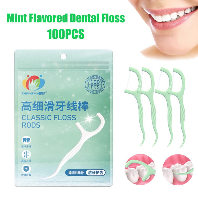 100pcs Mint Flavor Dental Floss Interdental Cleaning Floss Disposable Care Floss Stick Oral Care