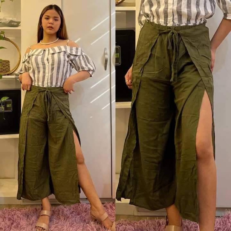 Challis boho overlap square pants with slit fit up to xl