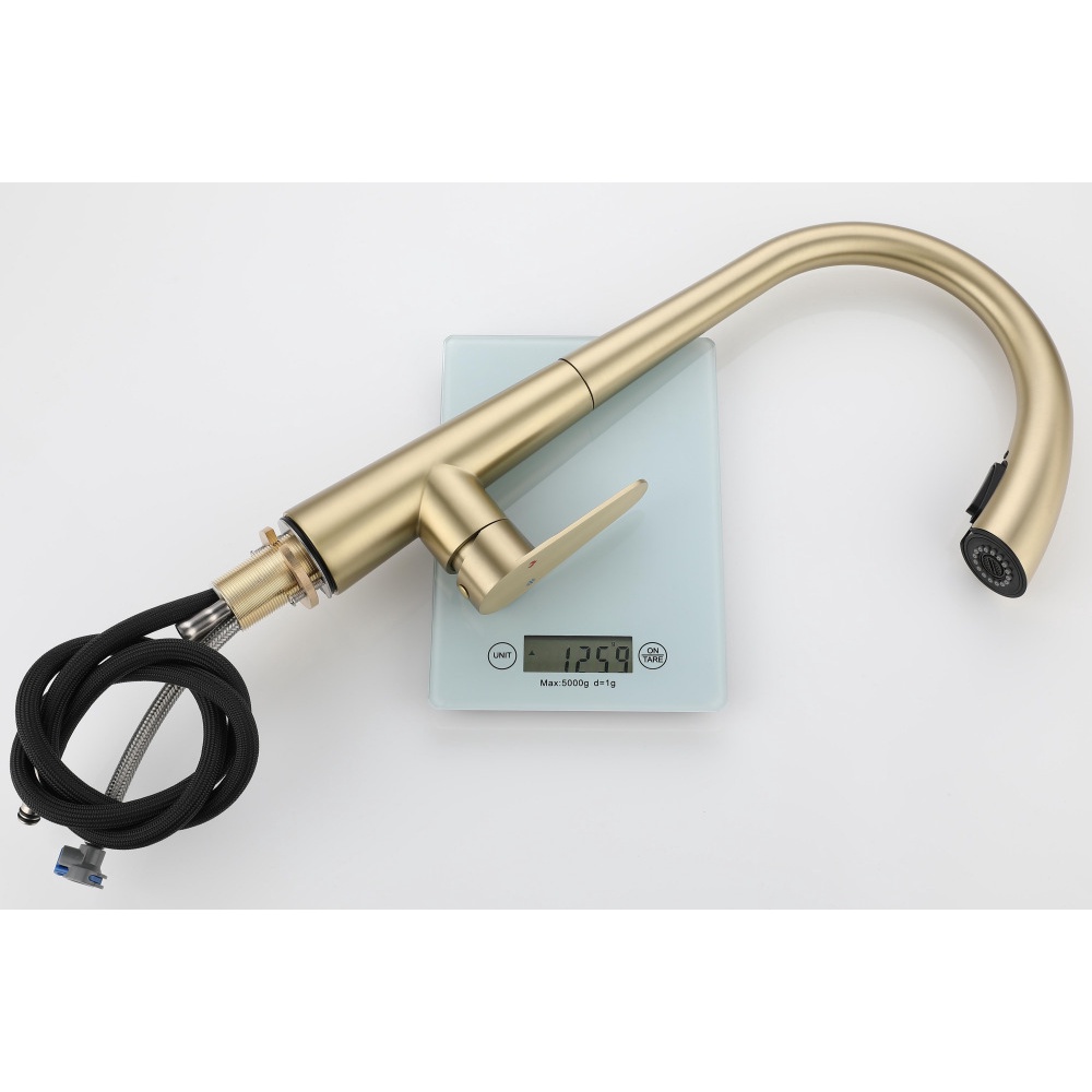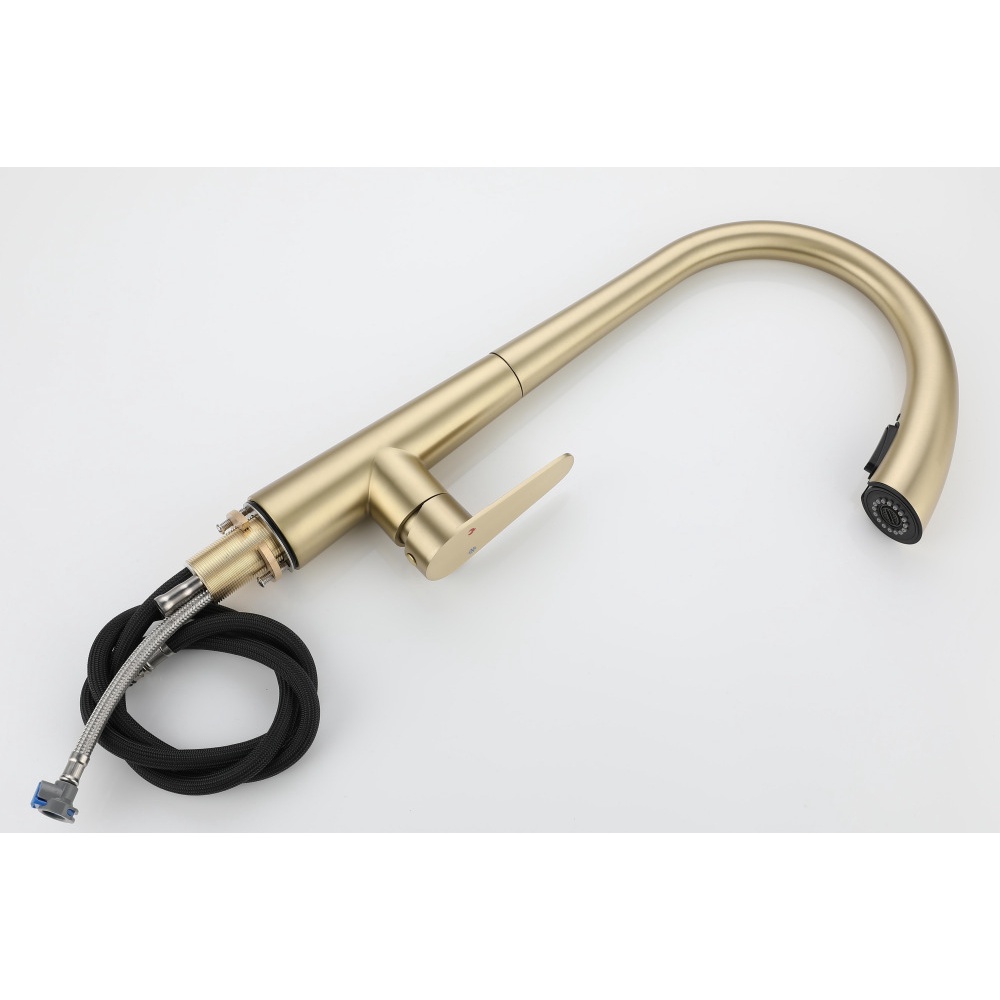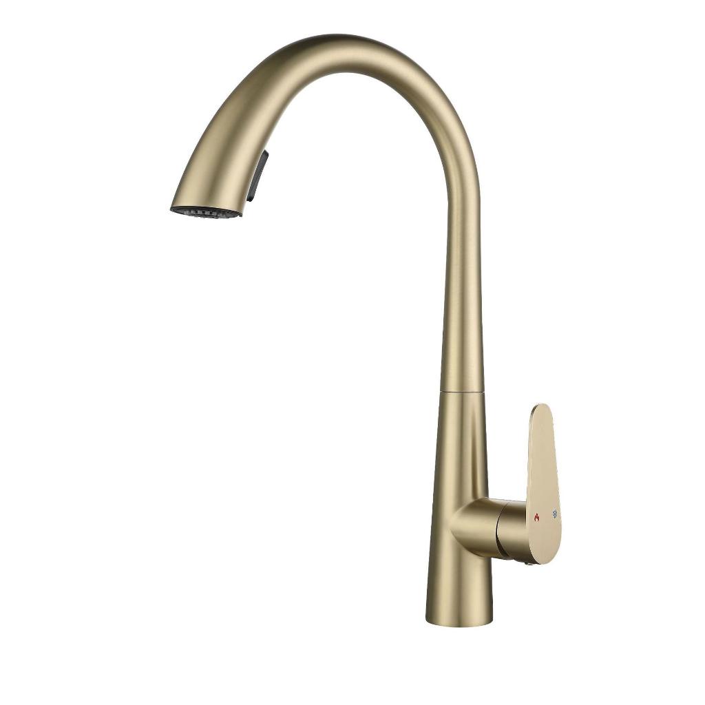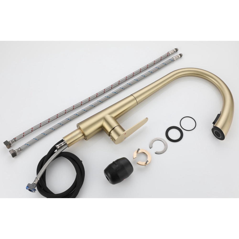 Champagne Gold Kitchen Faucet with Pull Down Sprayer, 360 Rotate Gold Kitchen Faucet Pre-Rinse Pull Out Kitchen Faucet