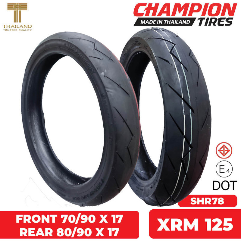 Champion Tubeless Tires Set for Honda XRM 125 70/90 X 17 & 80/90 X 17 (Made in Thailand)