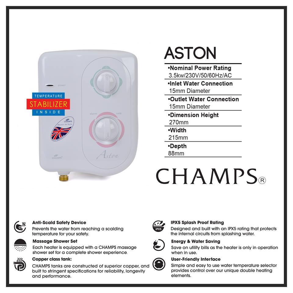 Champs Aston 3.5Kw Singlepoint Instant Water Heater (White)