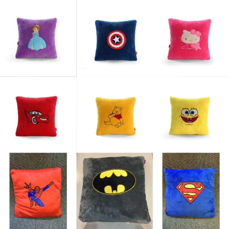 Character Square Pillow Super Hero Spiderman Batman Superman Spongebob Pooh Cars PEPPAPIG Sofia Elsa