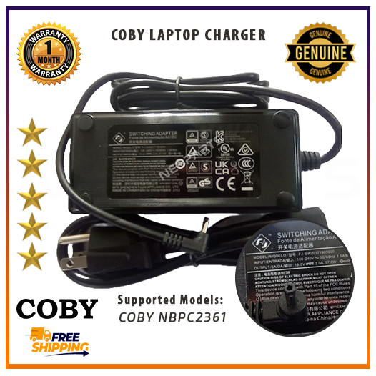 Charger for Coby NBPC2361 Laptop Original 19v Bnew