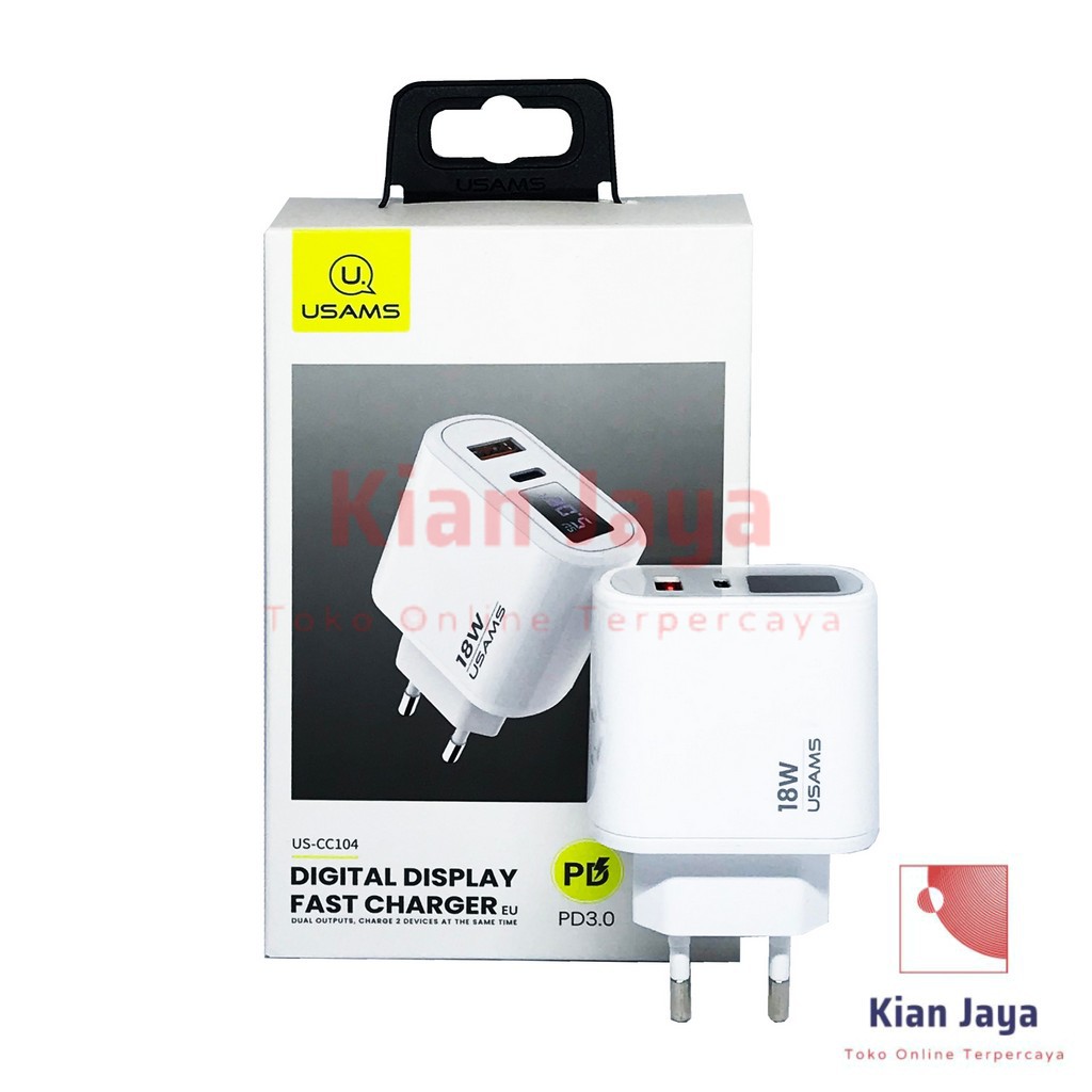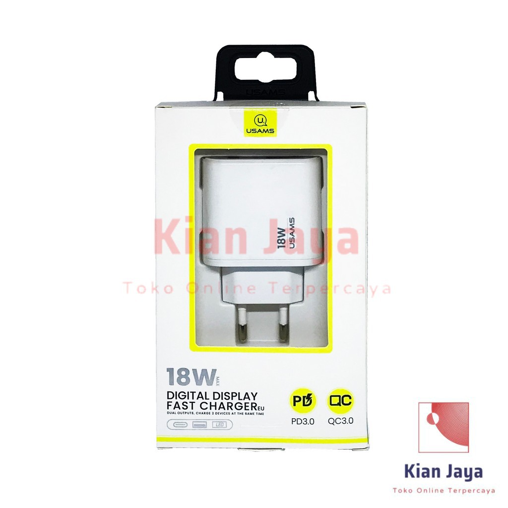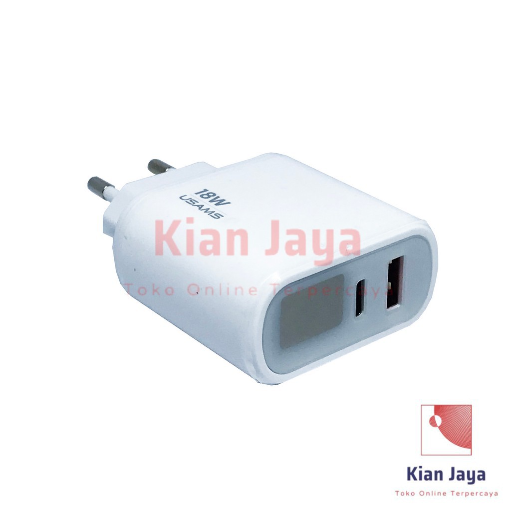 Charger usams Digital Display Fast Charger 18W Dual Output USB+Type C Port Original