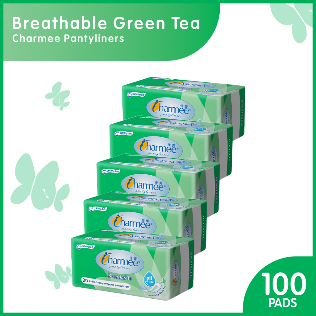 Charmee Pantyliner Breathable Deodorizing Green Tea 20's Set of 5
