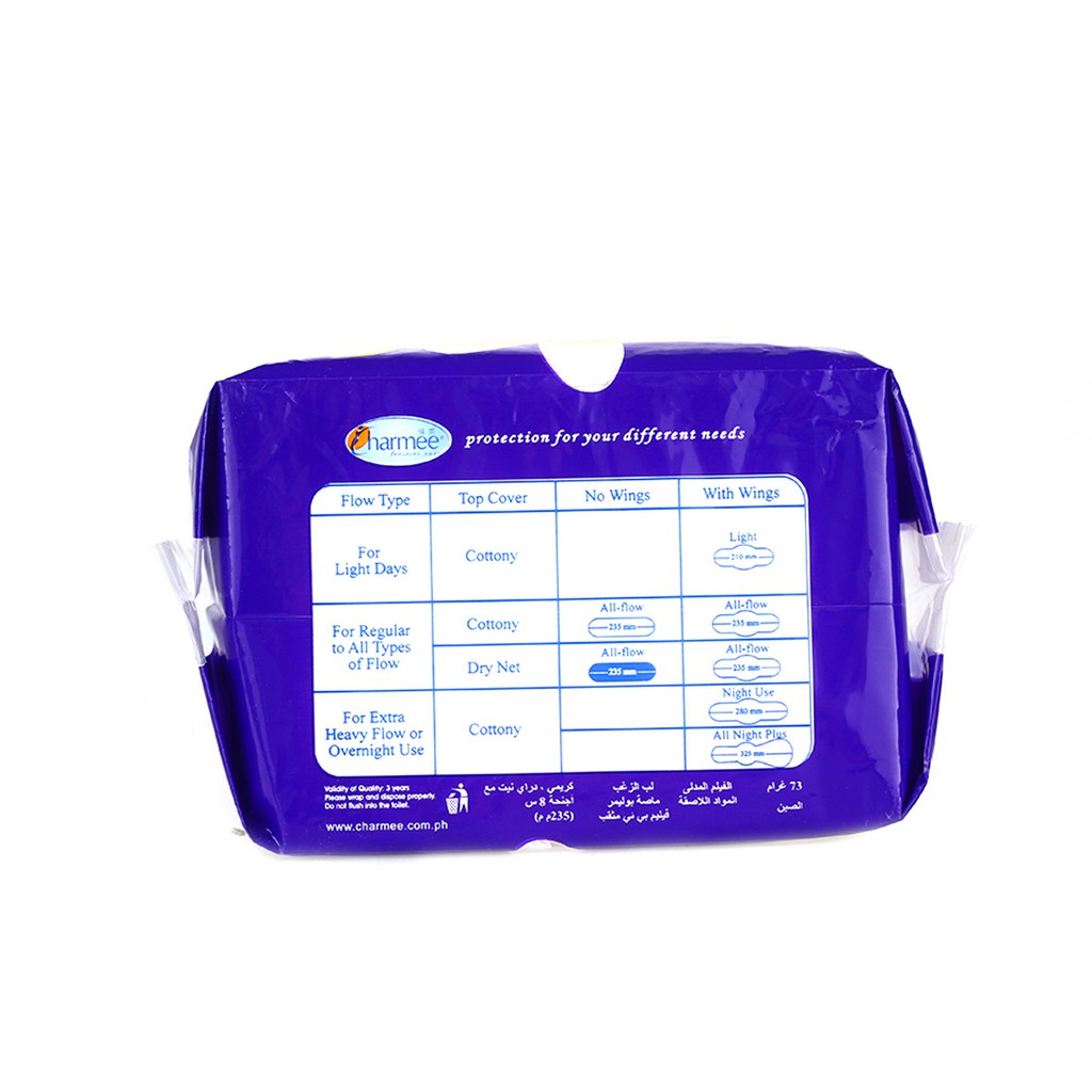 Charmee Sanitary Napkin All-flow Dry Net w/o wings 8's Set of 7