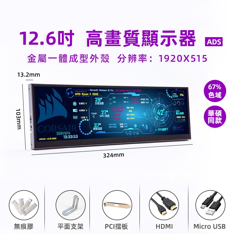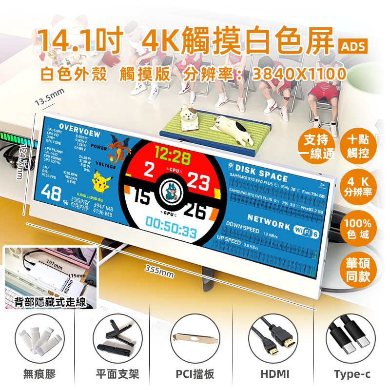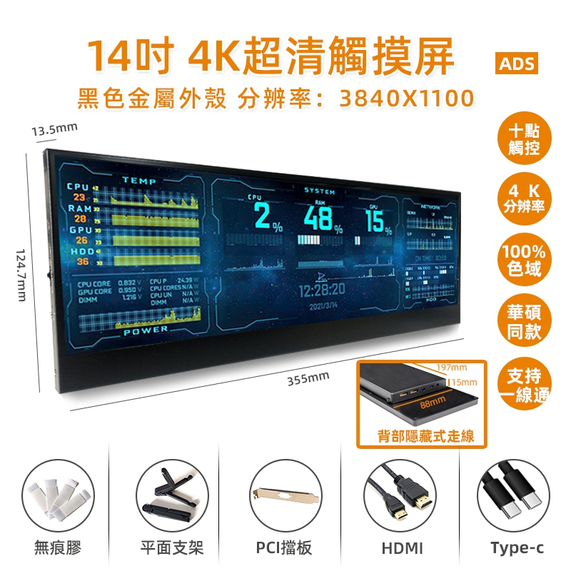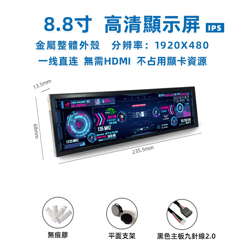 Chassis Secondary Screen Computer Hardware Temperature Monitoring Screen Temperature Control Display DIY Screen Computer Decoration Aida64 Monitoring Dynamic Chassis Light Board Full Tower Extens