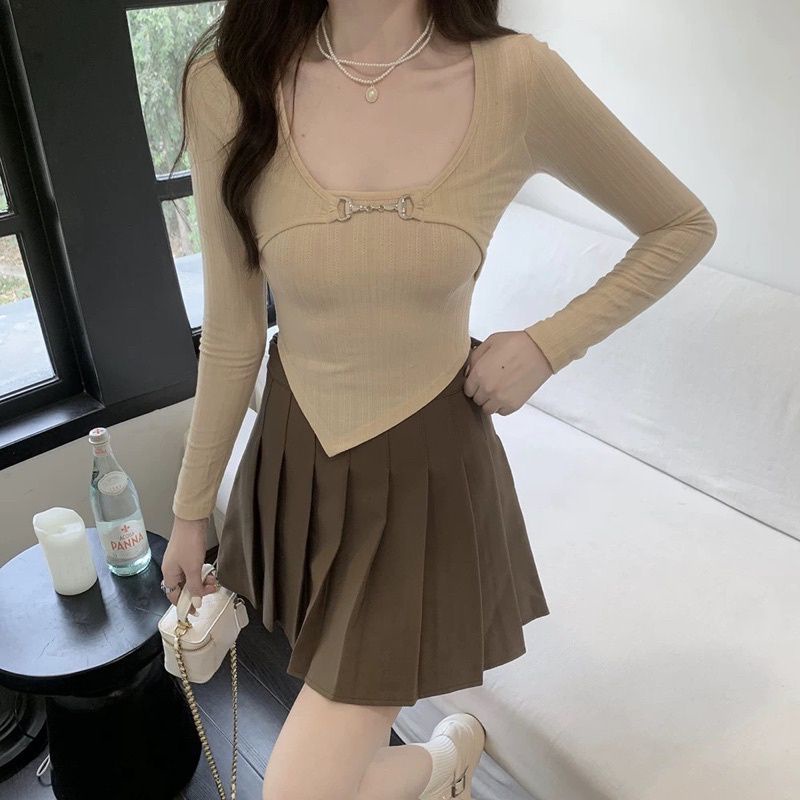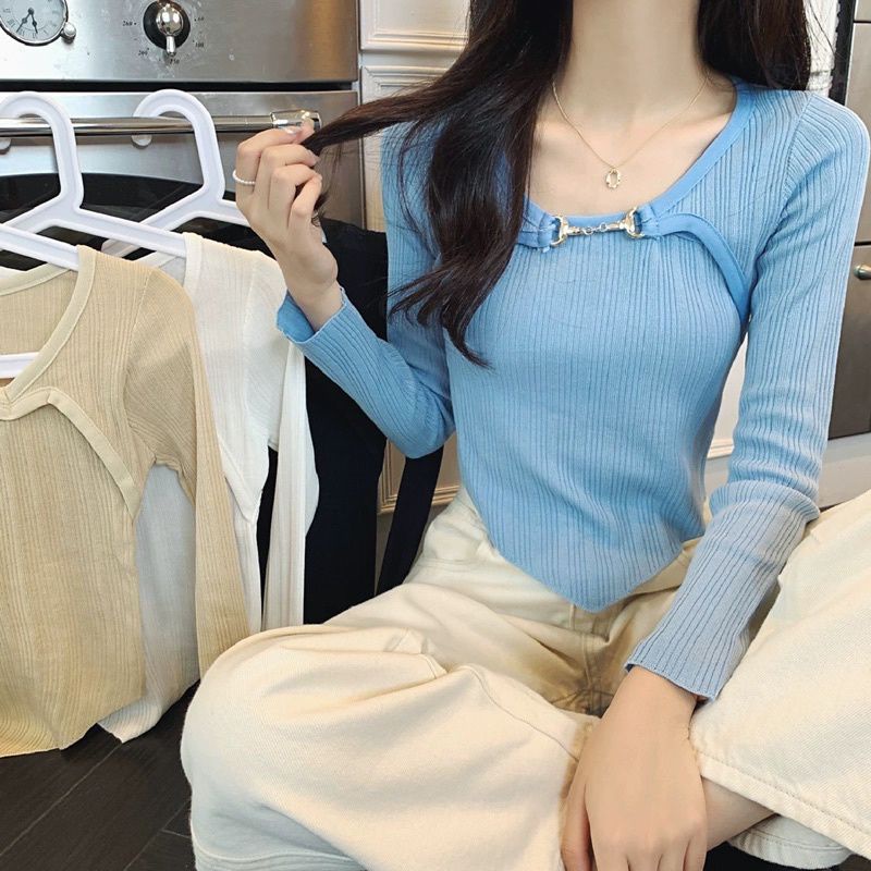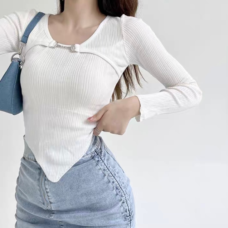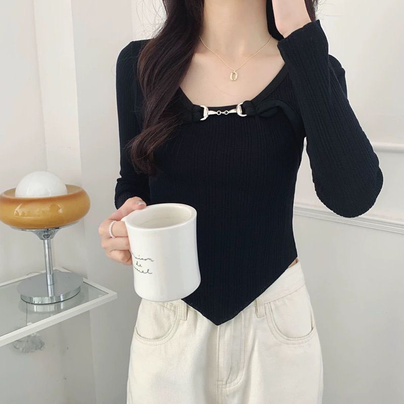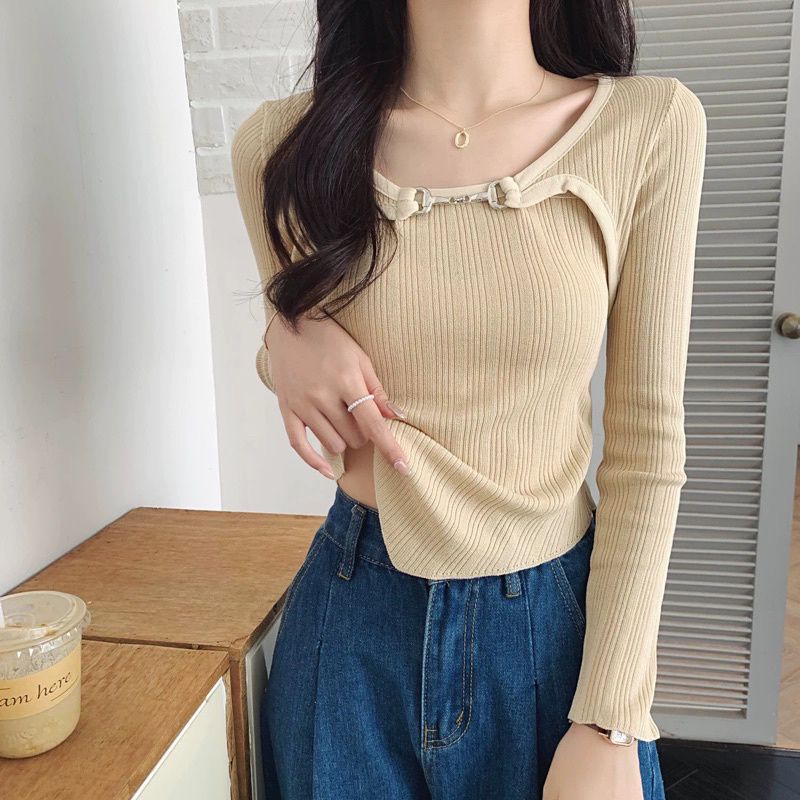 Check out new korean knitted longsleeve crop top /dance top Korean / Summer sun